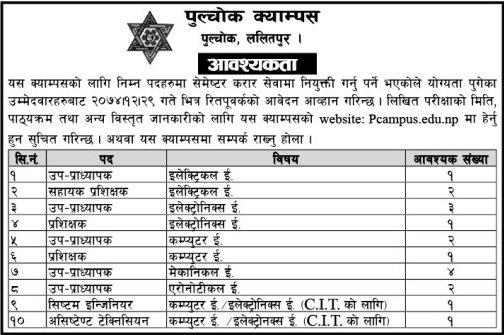 - Various Faculty Positions(18 nos.) Vacancy @ Pulchowk Campus